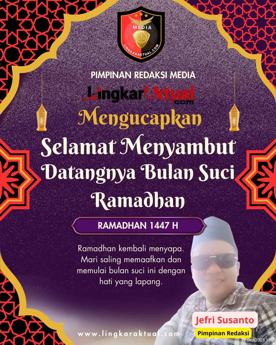 BEKASI, JAWA BARAT, LINGKARAKTUAL.COM – Dalam rangka menyambut datangnya Bulan Suci Ramadhan 1447 Hijriah, Pimpinan Redaksi Lingkaraktual.com, Jefri Susanto, menyampaikan ucapan selamat kepada seluruh...