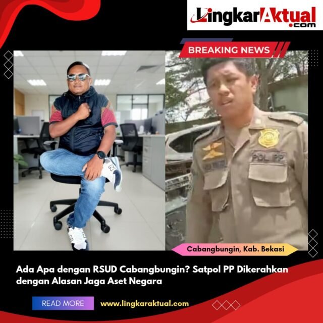 CABANGBUNGIN, KAB. BEKASI || LINGKARAKTUAL.COM || – Kabupaten Bekasi – Kehadiran personel Satuan Polisi Pamong Praja (Satpol PP) Kabupaten Bekasi di lingkungan RSUD Cabangbungin sejak 1 Oktober 2025 menimbulkan tanda tanya besar. Bukannya memberi jawaban menenangkan, justru pernyataan salah seorang anggota Satpol PP yang menyebut penugasan ini untuk “pengamanan aset negara” memicu gelombang pertanyaan baru di tengah publik.