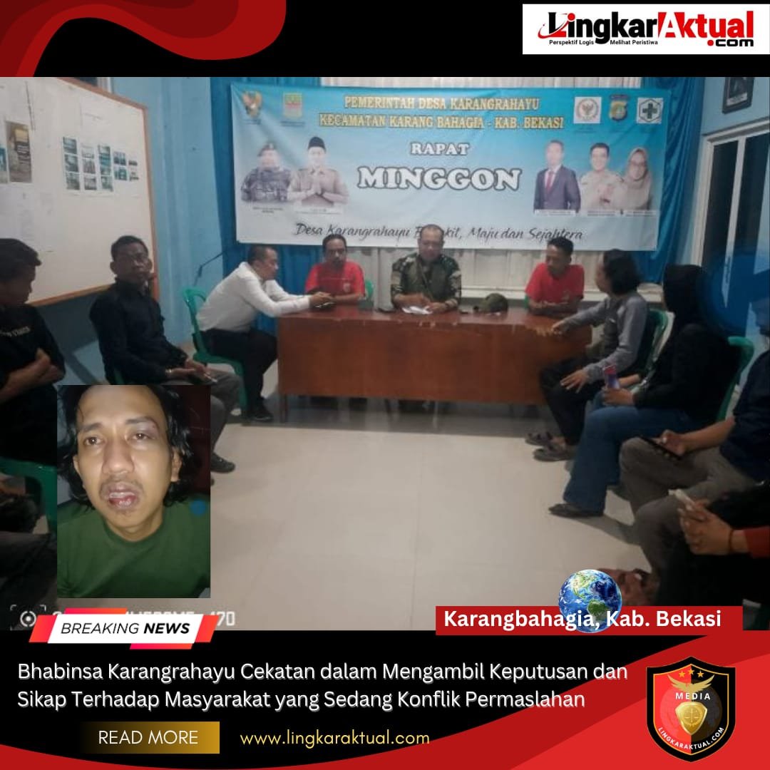 KARANGBAHAGIA, KABUPATEN BEKASI || LINGKARAKTUAL.COM || – Bintara Pembina Desa (Babinsa) Karang Rahayu Sertu Budi Nugraha cepat mengambil keputusan dan respon terhadap laporan masyarakat dalam hal ini sebagai Bintara Pembina Desa (Babinsa) yang notabennya sebagai abdi Negara yang membantu masyarakat berbagai permasalahan yang harus di luruskan kalau memang bisa di luruskan didalam konflik.