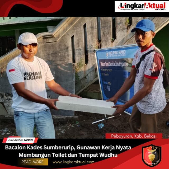 PEBAYURAN, KABUPATEN BEKASI || LINGKARAKTUAL.COM || – Bacalon kepala desa (kades) sumber urip, Gunawan, membuktikan komitmen nya untuk meningkatkan kualitas hidup warga dengan membangun toilet dan tempat wudhu di masjid, majelis ta’lim,dan madrasah ibtidaiyah di desa sumber urip. Selasa, (22/12/2025).