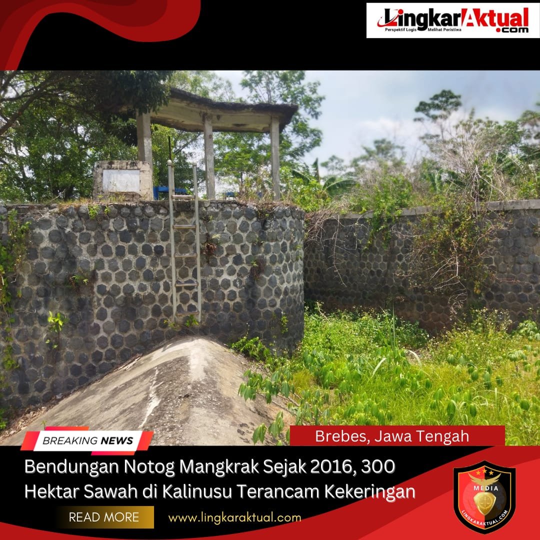 BREBES, JAWA TENGAH || LINGKARAKTUAL.COM || – Nasib ratusan petani di Desa Kalinusu, Kecamatan Bumiayu, Kabupaten Brebes, kian memprihatinkan. Bendungan Notog yang menjadi sumber pengairan utama bagi lahan pertanian seluas sekitar 300 hektare di wilayah itu, sudah tidak berfungsi sejak 2016 dan hingga kini belum mendapat perhatian serius dari pemerintah.