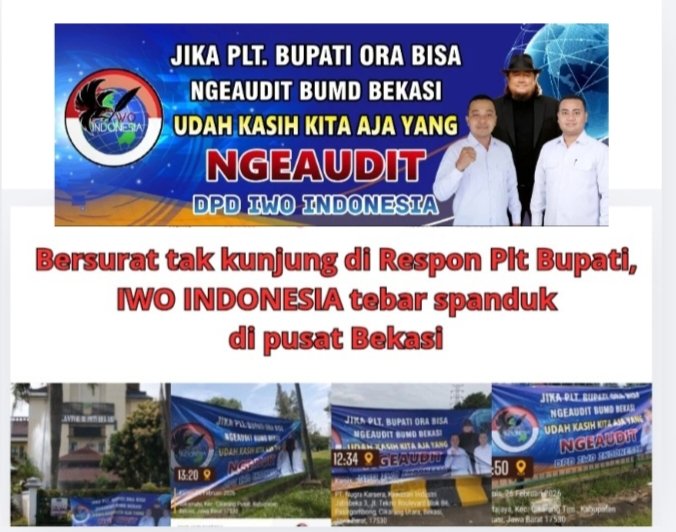 KABUPATEN BEKASI, JAWA BARAT, LINGKARAKTUAL.COM – Kekecewaan atas tidak adanya respons terhadap surat resmi yang dilayangkan kepada Plt Bupati Bekasi berujung pada aksi pemasangan spanduk oleh Dewan Pimpinan Daerah Ikatan Wartawan Online Indonesia (DPD IWOI) Kabupaten Bekasi di sejumlah titik strategis, termasuk depan Kantor Bupati Bekasi, Kamis (26/2/2026).