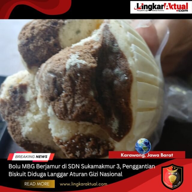 KARAWANG, JAWA BARAT || LINGKARAKTUAL.COM || – Dugaan kelalaian dalam pelaksanaan program Makanan Bergizi (MBG) kembali mencoreng dunia pendidikan di Kabupaten Karawang. Kali ini, sejumlah siswa SDN Sukamakmur 3 Kecamatan Telukjambe Timur dilaporkan menerima bolu kukus berjamur dan berbau tidak sedap saat pembagian menu MBG pada Jumat (31/10/2025). Kasus ini sontak memicu kritik publik dan sorotan terhadap lemahnya pengawasan penyelenggara program di daerah.