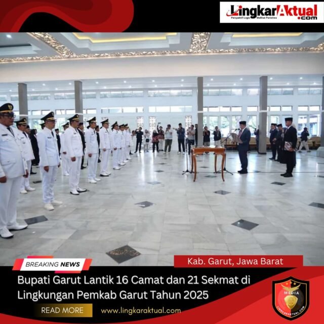 KAB. GARUT, Jawa Barat || LINGKARAKTUAL.COM || – Bupati Garut, Abdusy Syakur Amin, melantik Pegawai Negeri Sipil (PNS) dalam Jabatan Administrator (Camat dan Sekretaris Kecamatan) di lingkungan Pemerintah Kabupaten (Pemkab) Garut, yang dilaksanakan di Gedung Pendopo Garut, pada hari Jumat (19/9/2025).