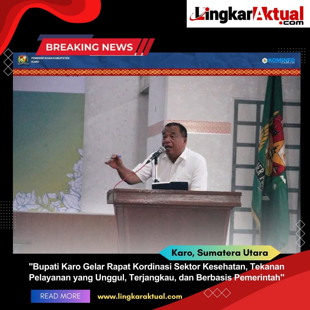 TANAH KARO, Sumatera Utara || Lingkaraktual.com || Bupati Karo, Brigjen Pol (Purn.) Dr. dr. Antonius Ginting, Sp.OG., M.Kes., memimpin langsung rapat strategis bersama jajaran Dinas Kesehatan, Direktur RSUD, Kepala Puskesmas, dan para dokter spesialis di Aula Kantor Bupati Karo, Sabtu, 17 Mei 2025. Pertemuan ini menjadi langkah konkret Pemerintah Kabupaten Karo dalam mewujudkan pelayanan kesehatan yang unggul, mudah diakses, dan dikelola secara bertanggung jawab oleh pemerintah daerah, sejalan dengan visi “Karo Beriman, Karo Berbudaya, Karo Modern, Karo Unggul Menuju Kabupaten Karo Sejahtera Berkelanjutan.”