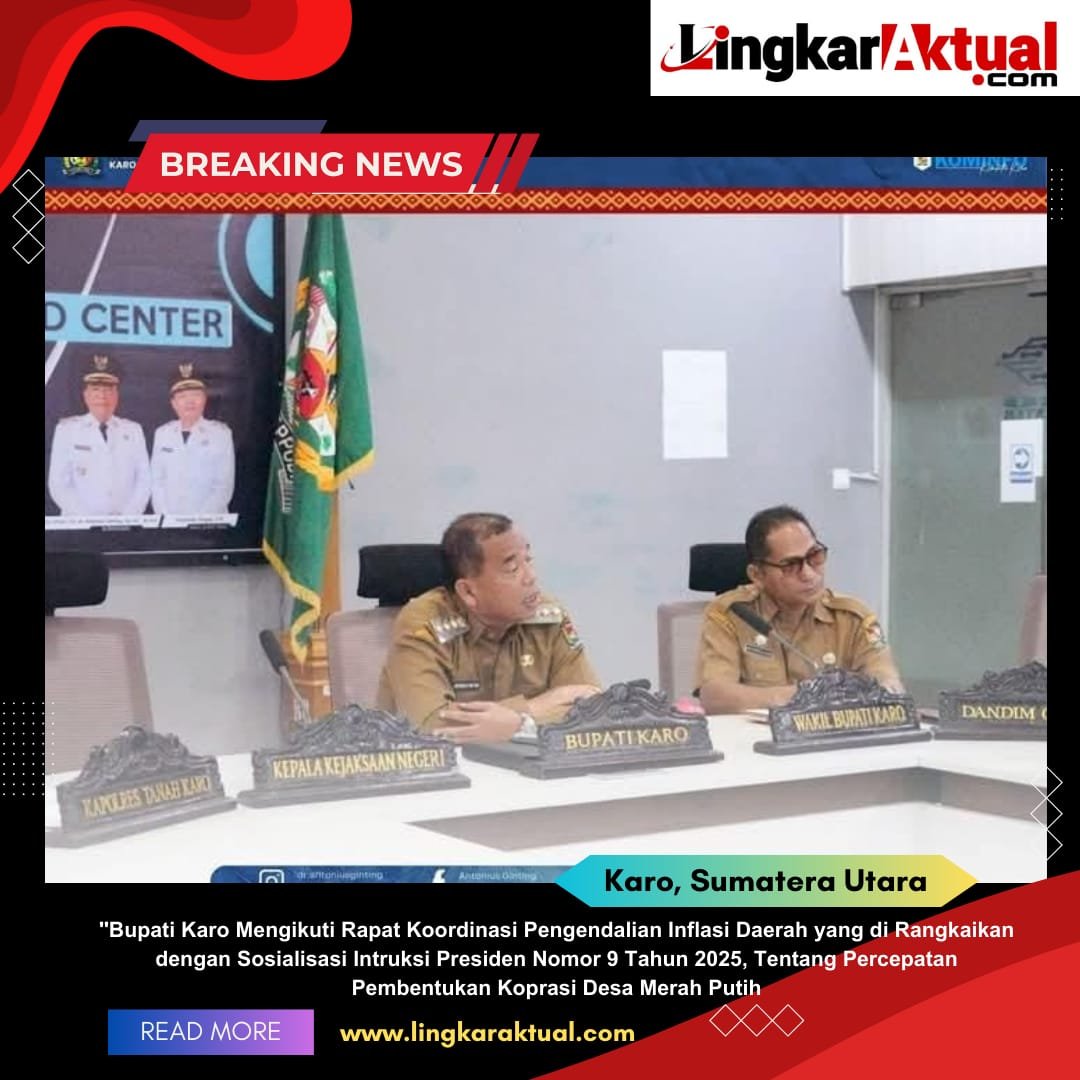 TANAH KARO, Sumatera Utara || Lingkaraktual.com || Bupati Karo, Brigjen Pol (Purn.) Dr. dr. Antonius Ginting, Sp.OG., M.Kes., mengikuti Rapat Koordinasi Pengendalian Inflasi Daerah yang dirangkaikan dengan Sosialisasi Instruksi Presiden Nomor 9 Tahun 2025 tentang Percepatan Pembentukan Koperasi Desa/Kelurahan Merah Putih secara daring bertempat di Ruang Karo Command Center Kantor Bupati Karo, Kabanjahe, Senin (19/05/2025).