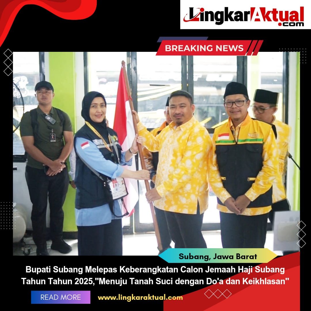 SUBANG, Jawa Barat || LINGKARAKTUAL.COM || – Bupati Subang Reynaldy Putra Andita Budi Raemi, S.IP., didampingi Wakil Bupati Subang H. Agus Masykur Rosyadi, S.Si., M.M., secara resmi melepas keberangkatan Calon Jemaah Haji Kabupaten Subang Tahun 2025, yang berlangsung di Wisma Haji, Jl. Arief Rachman Hakim, Cigadung, Subang, pada Sabtu (10/05/2025).