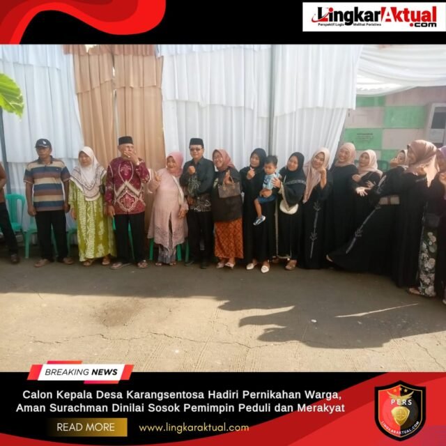 KARANGSENTOSA, KABUPATEN BEKASI, LINGKARAKTUAL.COM – Calon Kepala Desa Karangsentosa Aman Surachman menghadiri acara pernikahan salah satu warganya, menunjukkan sosok calon pemimpin yang dekat dan merakyat di tengah masyarakat. Minggu (12/05/2026).