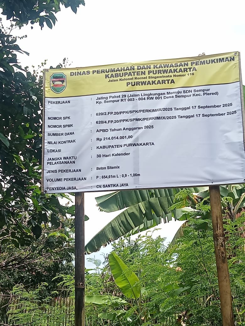 Proyek yang bersumber dari APBD Kabupaten Purwakarta Tahun Anggaran 2025 dengan nilai kontrak Rp 214.014.001,00 ini dilaksanakan di bawah pengawasan Dinas Perumahan dan Kawasan Permukiman (Disperkim). Dalam waktu pelaksanaan 30 hari kalender, CV. Santika Jaya mampu menyelesaikan pekerjaan sesuai target dengan hasil memuaskan.