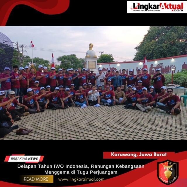 KARAWANG, JAWA BARAT, LINGKARAKTUAL.COM – Ikatan Wartawan Online Indonesia (IWO Indonesia) Dewan Pimpinan Daerah (DPD) Kabupaten Karawang menggelar Renungan Kebangsaan di Tugu Kebulatan Tekad Rengasdengklok, Minggu (8/2/2026) sore.