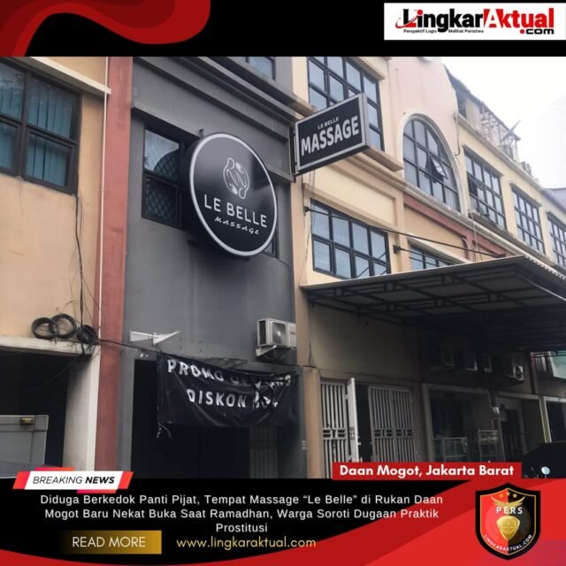 JAKARTA BARAT, LINGKARAKTUAL.COM – Keberadaan tempat pijat Le Belle Massage yang berada di kawasan Rukan Daan Mogot Baru, Kecamatan Kalideres, Jakarta Barat, kembali menuai sorotan publik. Pasalnya, tempat tersebut diduga masih tetap beroperasi selama bulan suci Ramadhan dan disinyalir menjadi lokasi praktik prostitusi terselubung. Jumat (06/03/2026).