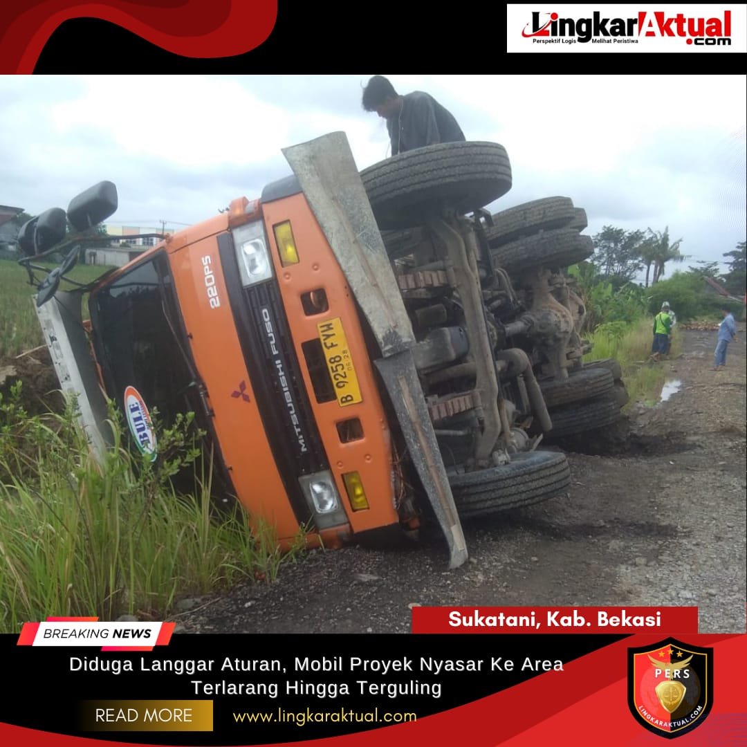 SUKATANI, KABUPATEN BEKASI, LINGKARAKTUAL.COM — Sebuah mobil pengurugan proyek pembangunan penampungan TKW di Kampung Warung Bingung RT 005/RW 002, Desa Sukaasih, dilaporkan salah jalur hingga masuk ke area Pertamina dan berakhir terguling. Insiden ini menyulut sorotan tajam publik karena terjadi di tengah imbauan tegas kepala desa agar kendaraan proyek hanya beroperasi pada malam hari demi keselamatan warga dan ketertiban lalu lintas.