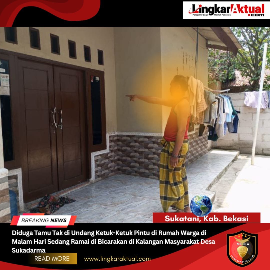 SUKATANI, KABUPATEN BEKASI || LINGKARAKTUAL.COM || – Ada salah seorang warga di Desa Sukadarma Kecamatan Sukatani Kabupaten Bekasi menceritakan lewat TLP kepada awak media, “bahwa semalam rumahnya kedatangan tamu tak di undang mengetuk ngetuk pintu rumahnya sekitar jam 3! malam hampir siang, dengan adanya yang mengetuk ngetuk pintu pemilik rumah tersebut bangun mengintip dari kaca jendela ketika di lihat di luar tidak ada orang yang ada di luar.