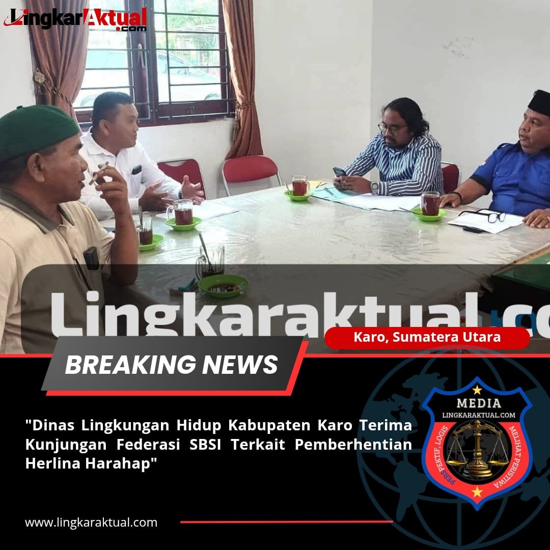 TANAH KARO-KABANJAHE, Sumatera Utara || LINGKARAKTUAL.COM || – Dinas Lingkungan Hidup (DLH) Kabupaten Karo menerima kunjungan Ketua Federasi Serikat Buruh Sejahtera Indonesia (SBSI) Kabupaten Karo, Rukun Ginting, yang mendampingi Herlina Harahap dalam rangka klarifikasi terkait pemberhentian yang bersangkutan sebagai pekerja di DLH, Rabu (25/06/2025).