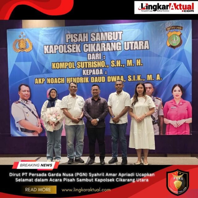 CIKARANG, KABUPATEN BEKASI, LINGKARAKTUAL.COM – Dalam rangka acara pisah sambut Kapolsek Cikarang Utara, Direktur Utama PT. Persada Garda Nusa, Syahril Amar Apriadi, menyampaikan ucapan selamat dan apresiasi atas dedikasi pejabat lama serta menyambut pejabat baru yang akan melanjutkan tugas menjaga keamanan dan ketertiban masyarakat.