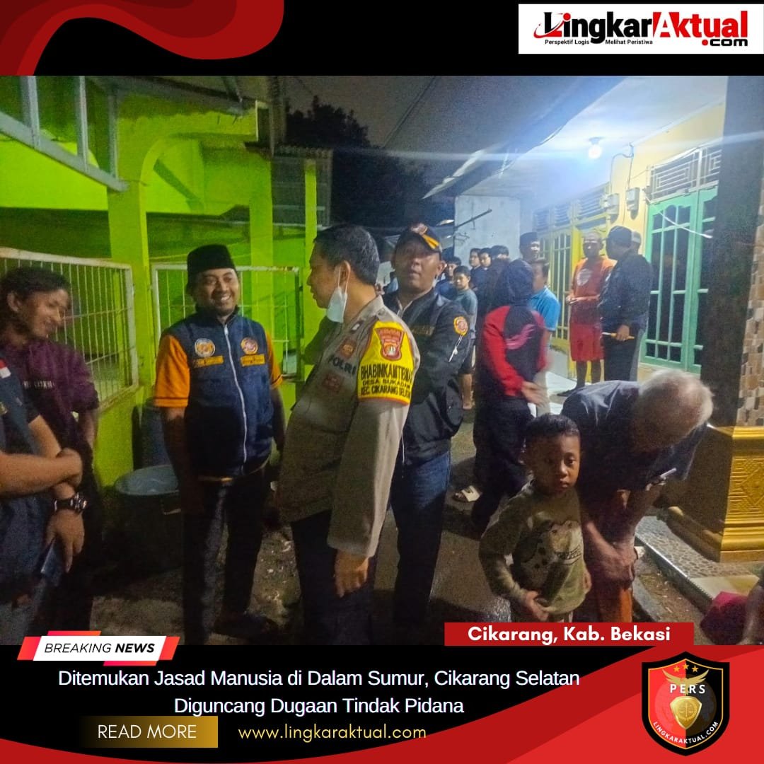 CIKARANG SELATAN, KAB. BEKASI || LINGKARAKTUAL.COM || – Warga Kampung Kebon Kopi, RT 02 RW 01 Kecamatan Cikarang Selatan, diguncang peristiwa serius yang mengarah pada dugaan tindak pidana berat, setelah sesosok mayat ditemukan di dalam sebuah sumur, Kamis (22/01/2026).
