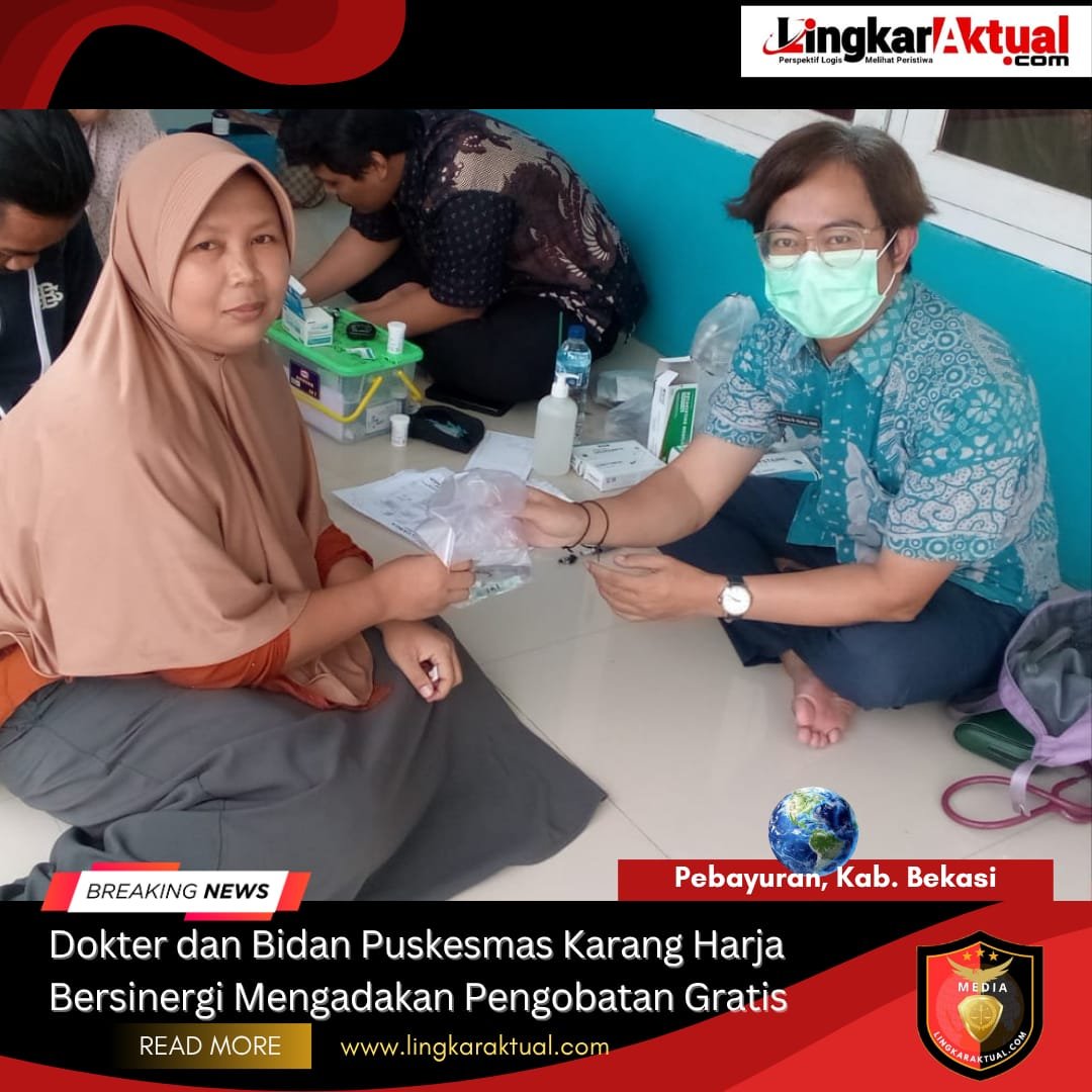 PEBAYURAN, KABUPATEN BEKASI || LINGKARAKTUAL.COM || – Puskesmas karang harja kembali menunjuk kan komitmen nya dalam memberikan pelayanan kesehatan kepada masyarakat dengan mengadakan pengobatan gratis di kp pamahan RT 02/01 Desa sumber Urip tepat nya di mushola al mu’min. Kamis:06-11-2025.