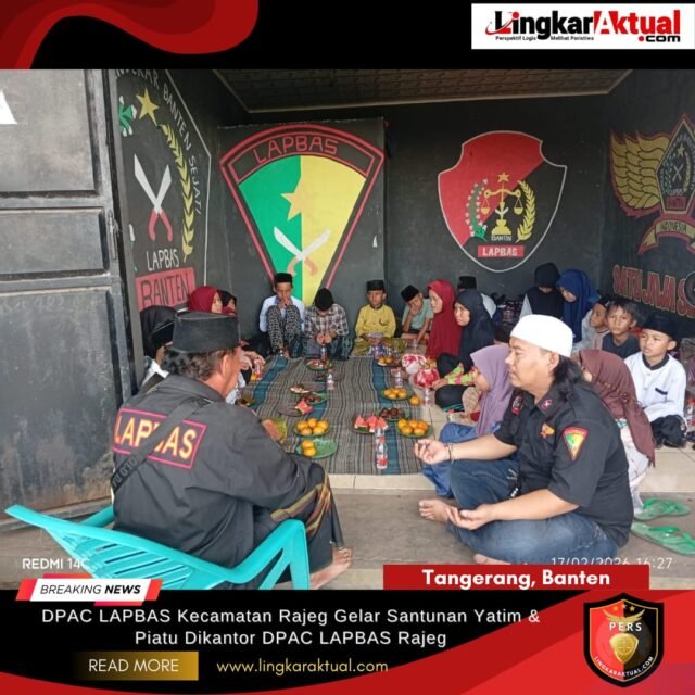 TANGERANG, BANTEN, LINGKARAKTUAL.COM – DPAC LAPBAS Kecamatan Rajeg yang diketuai oleh Poniman gelar giat sosial berbagi kasih dengan mengadakan santunan yatim & piatu yang diadakan di kantor LAPBAS Di kelurahan Sukatani Rajeg. (17/02/26)