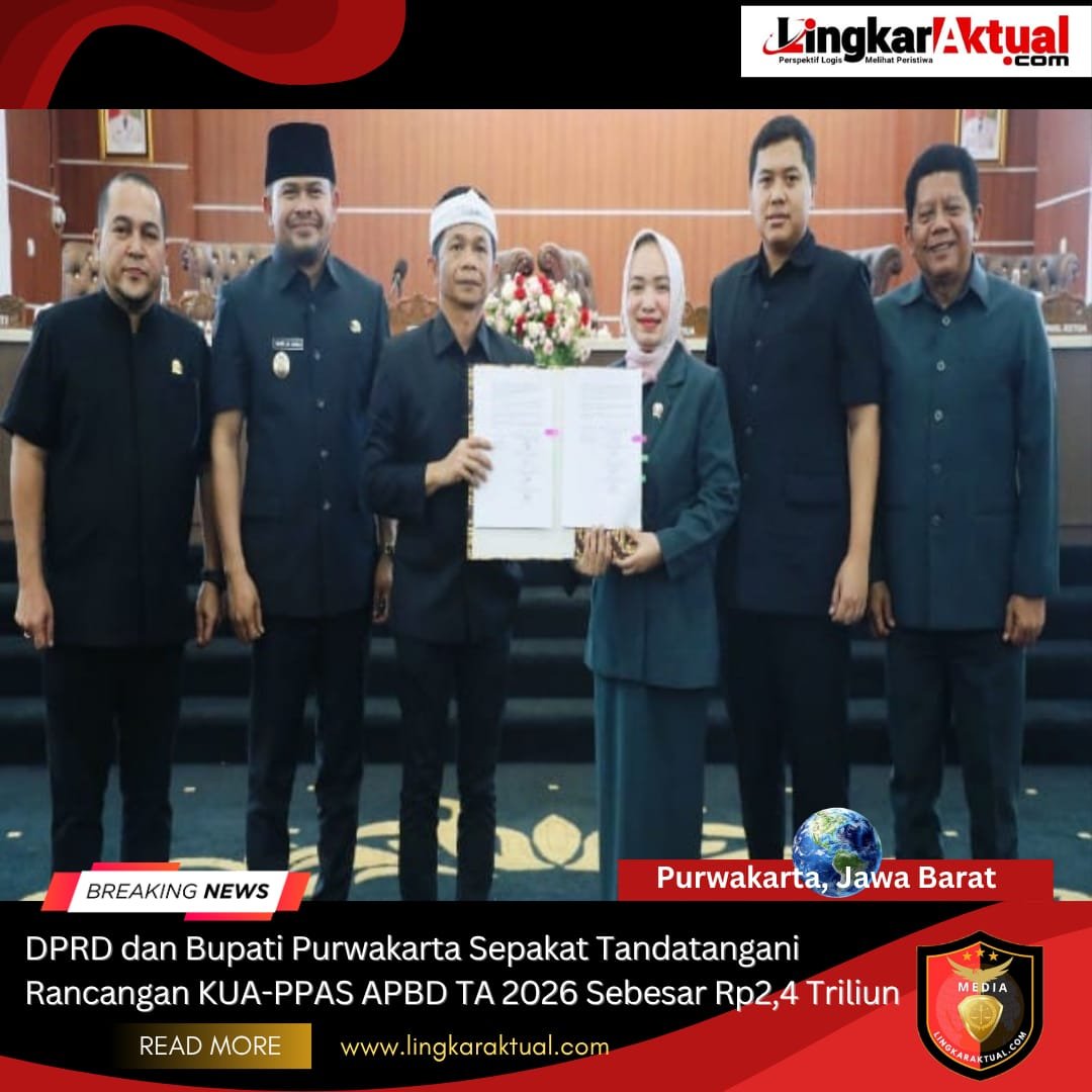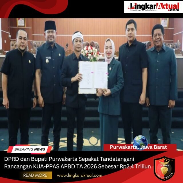 PURWAKARTA, JAWA BARAT || LINGKARAKTUAL.COM || – Selasa, 21 Okt 2025 – Dewan Perwakilan Rakyat Daerah (DPRD) Kabupaten Purwakarta bersama Bupati Purwakarta, Saepul Bahri Binzein, telah mencapai kesepakatan untuk menandatangani Rancangan Kebijakan Umum Anggaran (KUA) dan Rancangan Prioritas Plafon Anggaran Sementara (PPAS) Anggaran Pendapatan dan Belanja Daerah (APBD) Kabupaten Purwakarta Tahun Anggaran 2026.