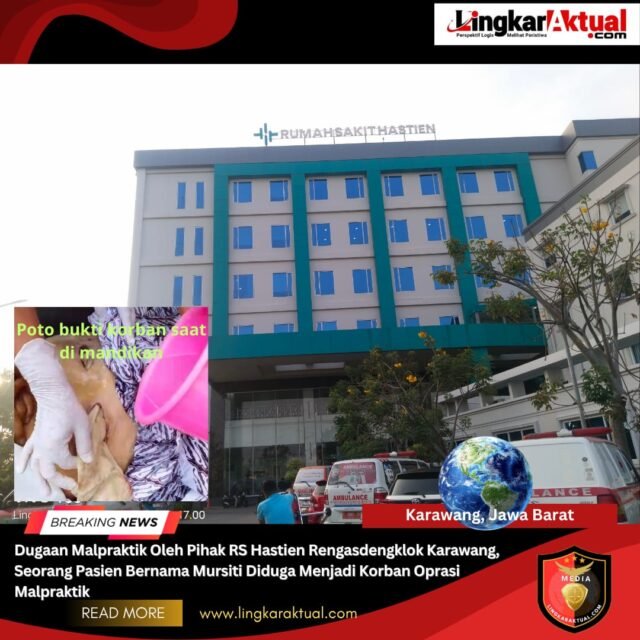 KARAWANG, JAWA BARAT || LINGKARAKTUAL.COM || — Seorang pasien bernama Mursiti, warga Kp. Pamahan Desa Sumberurip Kecamatan Pebayuran Kabupaten Bekasi, diduga menjadi korban malpraktik usai menjalani operasi di Rumah Sakit Hastien Rengasdengklok. Dugaan tersebut mencuat setelah pihak keluarga menemukan sejumlah kejanggalan dalam penanganan medis yang diterima korban. Sabtu (11/10/2025).