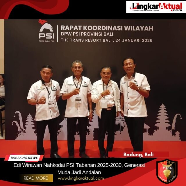 BADUNG, BALI || LINGKARAKTUAL.COM || – Edi Wirawan resmi dilantik sebagai Ketua Dewan Pimpinan Daerah (DPD) Partai Solidaritas Indonesia (PSI) Kabupaten Tabanan untuk masa kepengurusan 2025-2030 di Trans Hotel, Jalan Sunset Road, Badung, Bali, Sabtu, 24 Januari 2026.