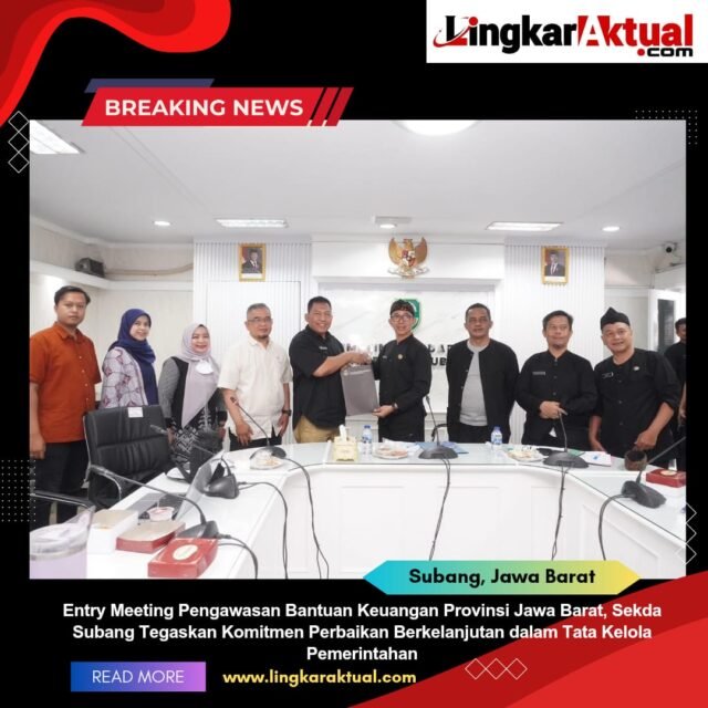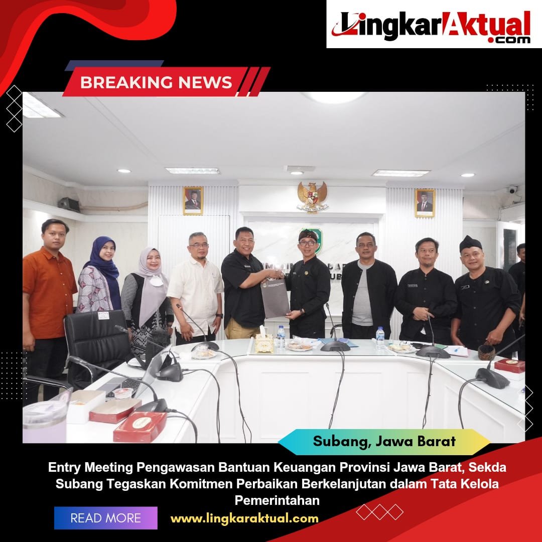 SUBANG, Jawa Barat || LINGKARAKTUAL.COM || – Pemerintah Daerah Kabupaten Subang menyambut kedatangan Tim Inspektorat Daerah (Irda) Provinsi Jawa Barat dalam rangka Entry Meeting Pengawasan Bantuan Keuangan Pemerintah Daerah Provinsi Jawa Barat Tahun Anggaran 2024. Kegiatan tersebut dilaksanakan di Ruang Rapat Bupati I, pada Kamis (15/05/2025).