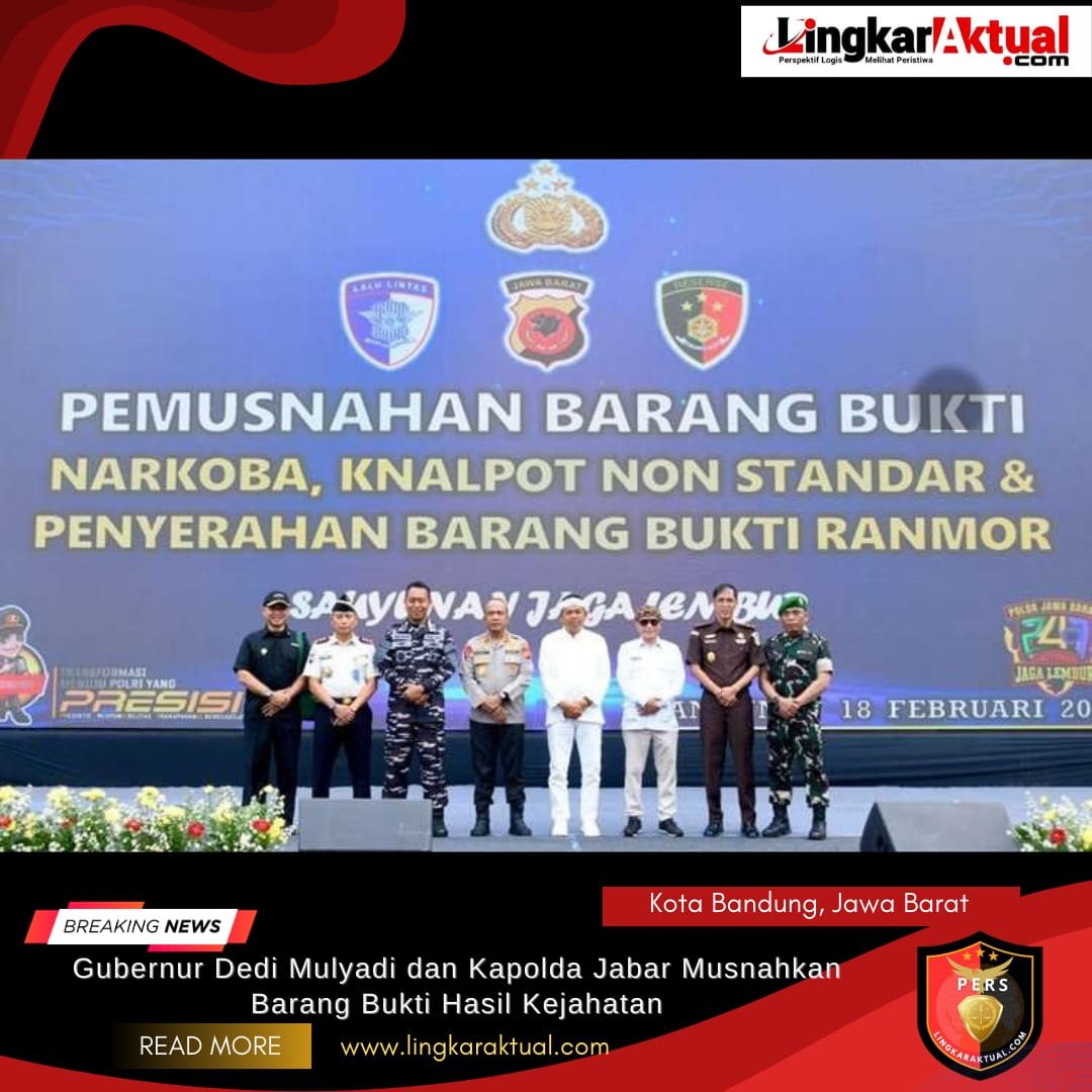 KOTA BANDUNG, JAWA BARAT, LINGKARAKTUAL.COM – Gubernur Jawa Barat Dedi Mulyadi bersama Kapolda Jawa Barat Rudi Setiawan melakukan pemusnahan barang bukti hasil tindak pidana dalam kegiatan yang digelar Polda Jawa Barat, Rabu (18/2/2026).