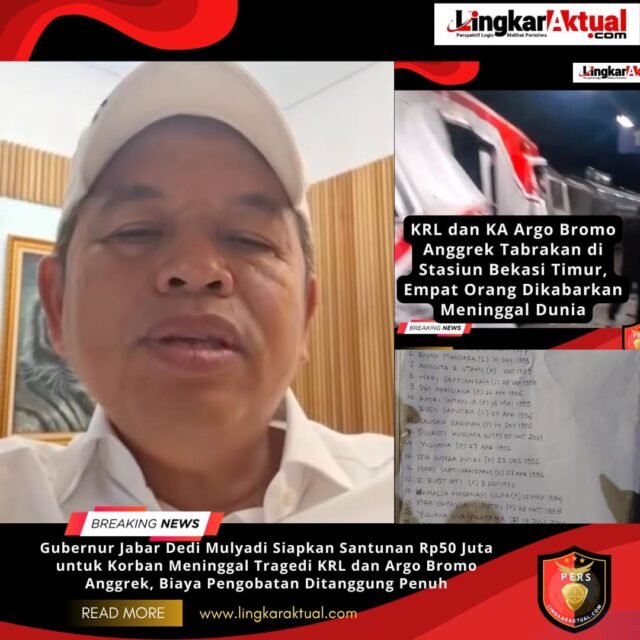 BEKASI, JAWA BARAT || LINGKARAKTUAL.COM || – Gubernur Jawa Barat, Dedi Mulyadi, menyampaikan duka cita mendalam atas tragedi kecelakaan antara KRL dan KA Argo Bromo Anggrek yang terjadi di wilayah Stasiun Bekasi Timur.