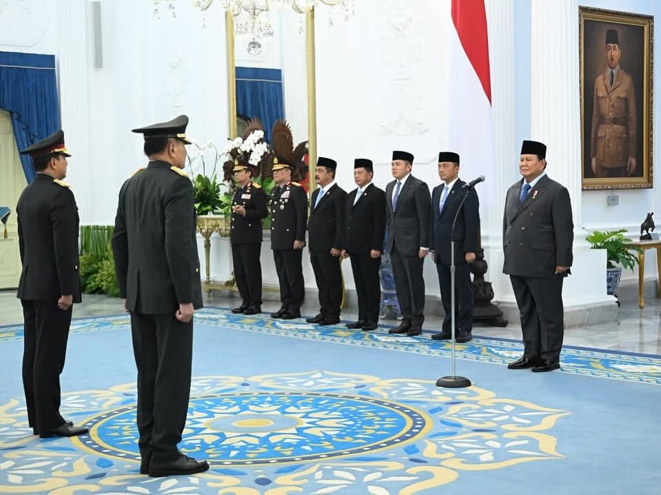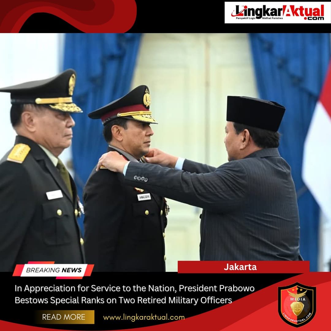 JAKARTA || LINGKARAKTUAL.COM || – President Prabowo Subianto conferred special ranks on one retired TNI and Polri officer each, Wednesday (17/09/2025) in the Credentials Room, Merdeka Palace, Jakarta.