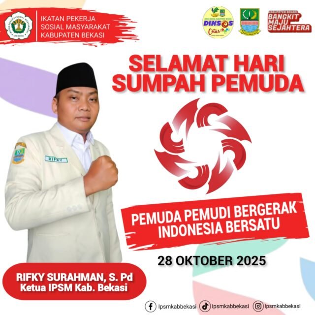 PEBAYURAN, KABUPATEN BEKASI || LINGKARAKTUAL.COM || – Dalam rangka memperingati Hari Sumpah Pemuda ke-97, Ikatan Pekerja Sosial Masyarakat (IPSM) Kabupaten Bekasi turut menyampaikan semangat persatuan dan kebangkitan pemuda Indonesia melalui tema “Pemuda Pemudi Bergerak, Indonesia Bersatu.”