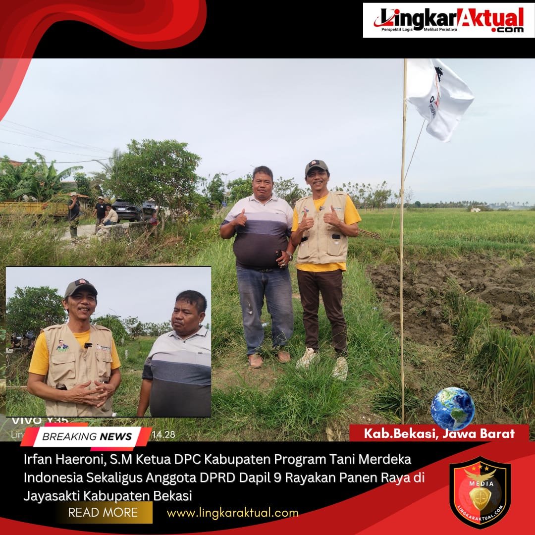 KABUPATEN BEKASI, JAWA BARAT || LINGKARAKTUAL.COM || – Ketua Dewan Pimpinan Daerah (DPD) Program Tani Merdeka Indonesia Kabupaten Bekasi, Irfan Haeroni, SM, yang juga merupakan Anggota DPRD Provinsi Jabar Dapil 9, menghadiri sekaligus merayakan acara Panen Raya bersama para petani di Desa Jayasakti, Kecamatan Muaragembong, Kabupaten Bekasi. Senin (10/11/2025).