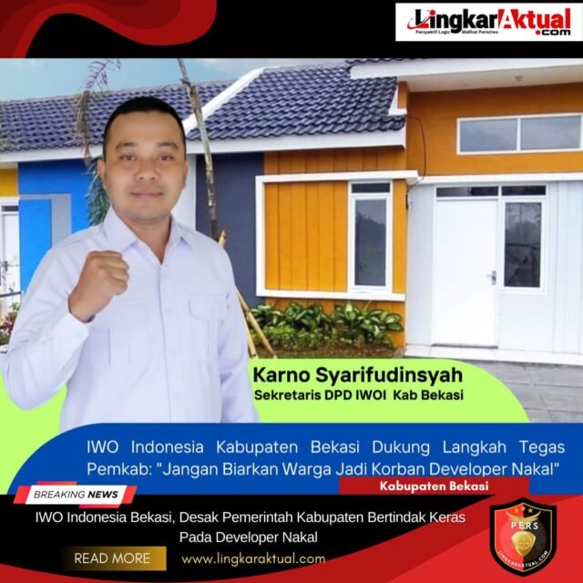 KABUPATEN BEKASI, JAWA BARAT || LINGKARAKTUAL.COM || – Dewan Pimpinan Daerah Ikatan Wartawan Online (DPD IWO) Indonesia Kabupaten Bekasi menyatakan dukungan penuh atas langkah tegas Pemerintah Kabupaten Bekasi yang memberikan peringatan keras kepada pengembang perumahan terkait kewajiban serah terima Fasilitas Sosial (Fasos) dan Fasilitas Umum (fasum).