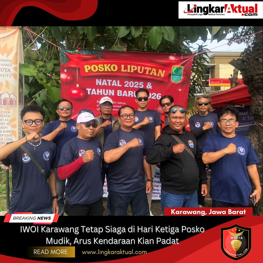 KARAWANG, JAWA BARAT || LINGKARAKTUAL.COM || – Memasuki hari ketiga pelaksanaan Posko Mudik Natal dan Tahun Baru (Nataru) 2026, Ikatan Wartawan Online Indonesia (IWOI) DPD Karawang tetap menunjukkan konsistensi dalam mengawal arus mudik yang melintas di wilayah Kabupaten Karawang.