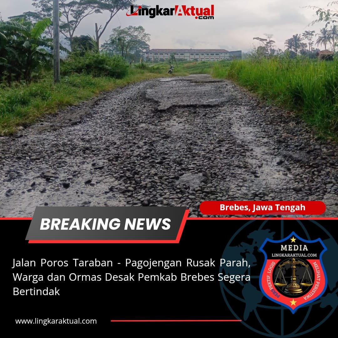 BREBES, Jawa Tengah || LINGKARAKTUAL.COM || – Kondisi memprihatinkan jalan poros yang menghubungkan Desa Taraban dengan Desa Pagojengan dan Desa Jatisawit, Kecamatan Paguyangan dan Bumiayu, Kabupaten Brebes, menuai sorotan tajam dari masyarakat. Jalan yang terletak di wilayah WR Kebun Lumpang ini mengalami kerusakan cukup parah dan hingga kini belum mendapat penanganan dari Pemerintah Kabupaten Brebes, khususnya Dinas Pekerjaan Umum (DPU).
