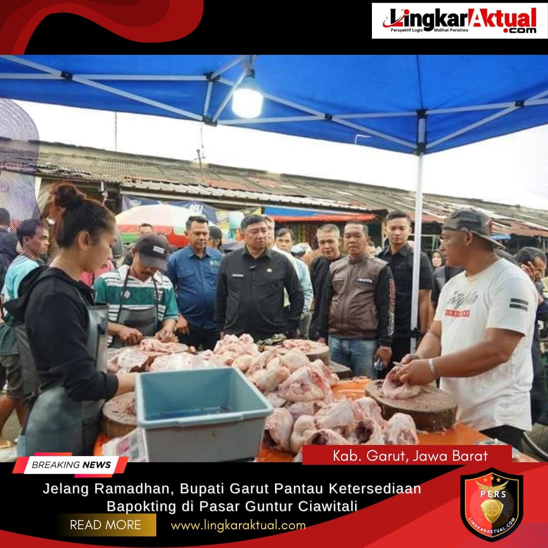 KAB. GARUT, JAWA BARAT, LINGKARAKTUAL.COM – Bupati Garut, Abdusy Syakur Amin, melakukan monitoring langsung terhadap harga dan ketersediaan Bahan Pokok Penting (Bapokting) menjelang bulan suci Ramadan di Pasar Guntur Ciawitali, Kecamatan Tarogong Kidul, Kamis (12/2/2026).