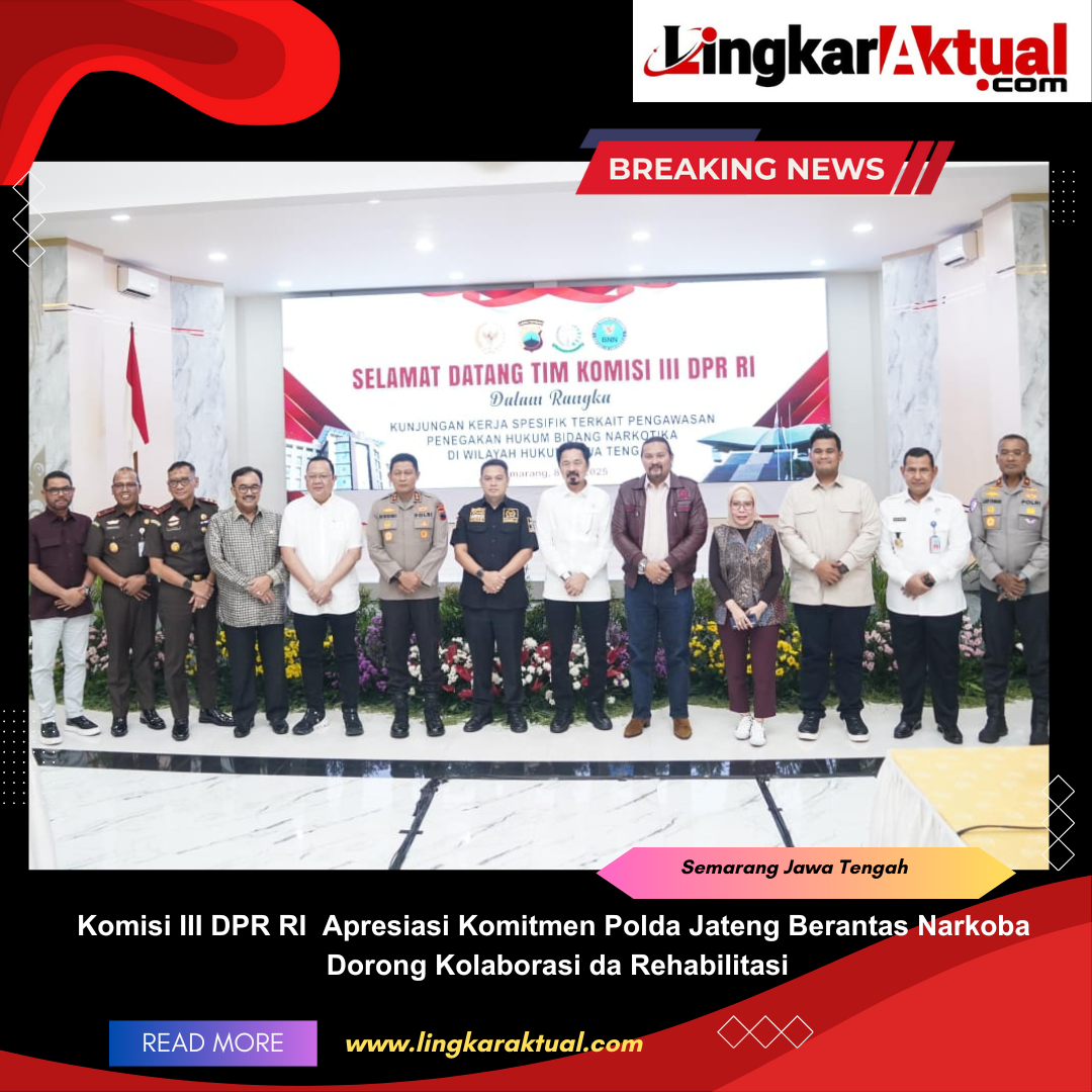 Semarang, Jawa Tengah || LINGKARAKTUAL.COM || Kapolda Jawa Tengah Irjen Pol Ribut Hari Wibowo menegaskan komitmennya dalam melindungi masyarakat dari ancaman peredaran narkoba, dalam kunjungan kerja spesifik Komisi III DPR RI yang berlangsung di Mapolda Jateng, Kamis (8/5/2025). Kegiatan ini merupakan bagian dari agenda pengawasan penegakan hukum bidang narkotika di wilayah Jawa Tengah.