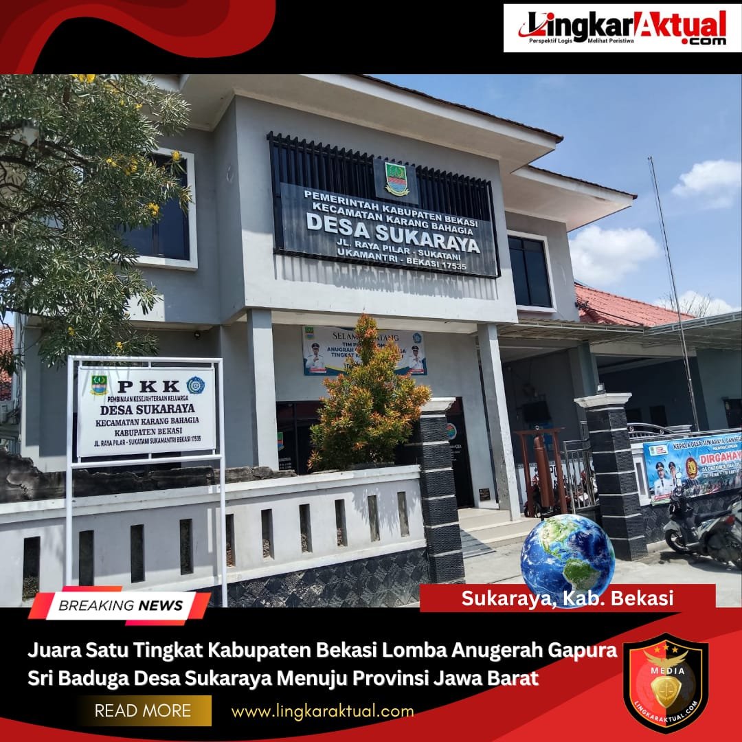 Kepala Desa Sukaraya Kecamatan Karang bahagia DANO SUMARNO ketika dijumpai di kantornya Selasa (14-10-2025) membenarkan bahwa Desa Sukaraya telah terpilih menjadi juara satu (1) tingkat Kabupaten Bekasi, yang nantinya Desa Sukaraya akan mewakili lomba Anugrah Gapura Sri Baduga tingkat Provinsi.