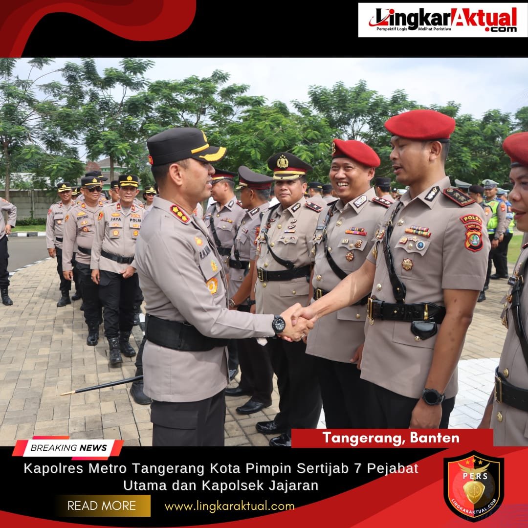TANGERANG, BANTEN, LINGKARAKTUAL.COM – Rotasi jabatan kembali dilakukan di lingkungan Polres Metro Tangerang Kota. Serah terima jabatan (sertijab) pejabat utama dan kapolsek jajaran digelar di Lapangan Presisi Polres Metro Tangerang Kota, Jalan Perintis Kemerdekaan II, Babakan, Kota Tangerang, Rabu Siang (18/2/2026).