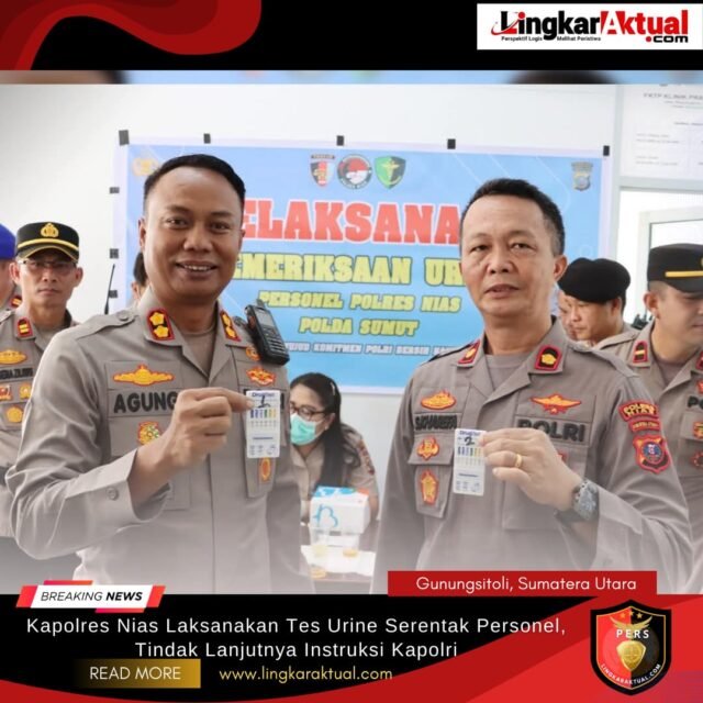 GUNUNGSITOLI, SUMATERA UTARA, LINGKARAKTUAL.COM — Dalam rangka menindaklanjuti instruksi pimpinan tertinggi Kepolisian Negara Republik Indonesia, Kapolres Nias AKBP Agung S.D.C. melaksanakan pemeriksaan tes urine secara serentak terhadap seluruh personel di lingkungan Polres Nias, Senin (2/03/2026).