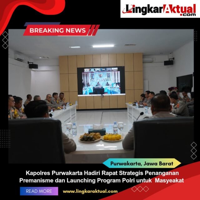 PURWAKARTA, Jawa Barat || Lingkaraktual.com || Kapolres Purwakarta AKBP Lilik Ardhiansyah bersama Wakapolres, para Pejabat Utama (PJU), dan seluruh Kapolsek jajaran mengikuti rangkaian rapat strategis secara virtual dari Aula Presisi Polres Purwakarta.