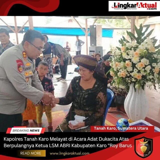 TANAH KARO, KABANJAHE, SUMATERA UTARA || LINGKARAKTUAL.COM || – Kapolres Tanah Karo AKBP Eko Yulianto, S.H., S.I.K., M.M., M.Tr.Opsla., bersama beberapa Pejabat Utama (PJU) Polres Tanah Karo menghadiri acara adat dukacita atas berpulangnya Ketua LSM ABRI Kabupaten Karo, Roy Barus, di Jambur Adil Makmur, Kabanjahe, Selasa(21/10).