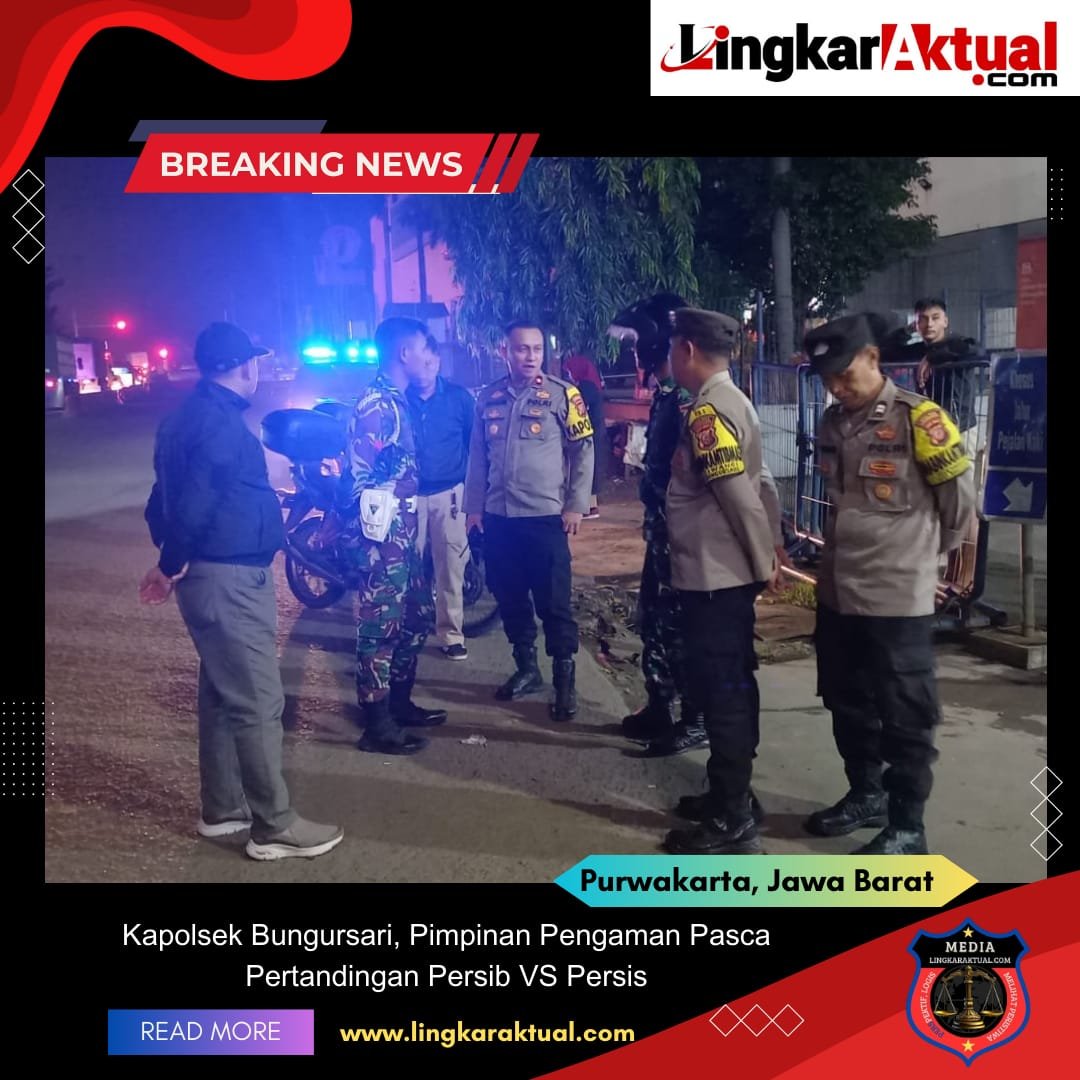 PURWAKARTA, Jawa Barat || LINGKARAKTUAL.COM || Personil Polsek Bungursari, Polres Purwakarta di bawah pimpinan Kapolsek Bungursari, Kompol R Dandan Nugraha Goas melaksanakan kegiatan cipta kondisi pengamanan pasca nobar pertandingan Persib melawan Persis Solo, pada Sabtu, 24 Mei 2025, Petang.