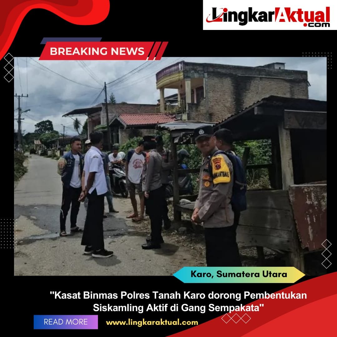 TANAH KARO, Sumatera Utara || LINGKARAKTUAL.COM || – Dalam upaya memperkuat sistem keamanan lingkungan berbasis partisipasi masyarakat, Kasat Binmas Polres Tanah Karo IPTU Agustina Nainggolan, S.H., M.H. mendorong pembentukan dan pengaktifan kembali Satuan Keamanan Lingkungan (Satkamling) di Kelurahan Kampung Dalam, khususnya di Gang Sempakata, Kecamatan Kabanjahe.