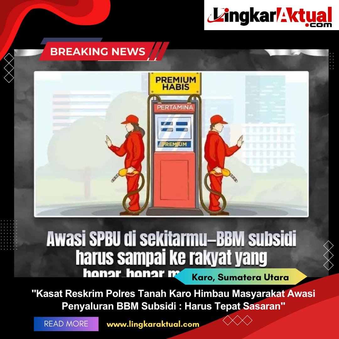 TANAH KARO, Sumatera Utara || Lingkaraktual.com || Polres Tanah Karo melalui Satuan Reserse Kriminal (Satreskrim) menegaskan pentingnya pengawasan terhadap pendistribusian Bahan Bakar Minyak (BBM) bersubsidi agar tepat sasaran dan tidak disalahgunakan oleh pihak-pihak yang tidak bertanggung jawab.