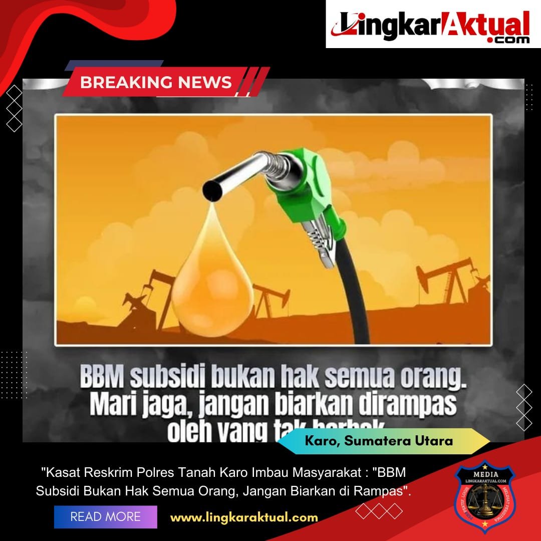 TANAH KARO, Sumatera Utara || LINGKARAKTUAL.COM || – Kasat Reskrim Polres Tanah Karo, AKP Rasmaju Tarigan, S.H., mengingatkan seluruh lapisan masyarakat untuk bersama-sama menjaga penyaluran Bahan Bakar Minyak (BBM) bersubsidi agar tepat sasaran. Ia menegaskan bahwa BBM subsidi bukanlah hak semua orang, melainkan hanya diperuntukkan bagi masyarakat yang benar-benar berhak sesuai ketentuan pemerintah.