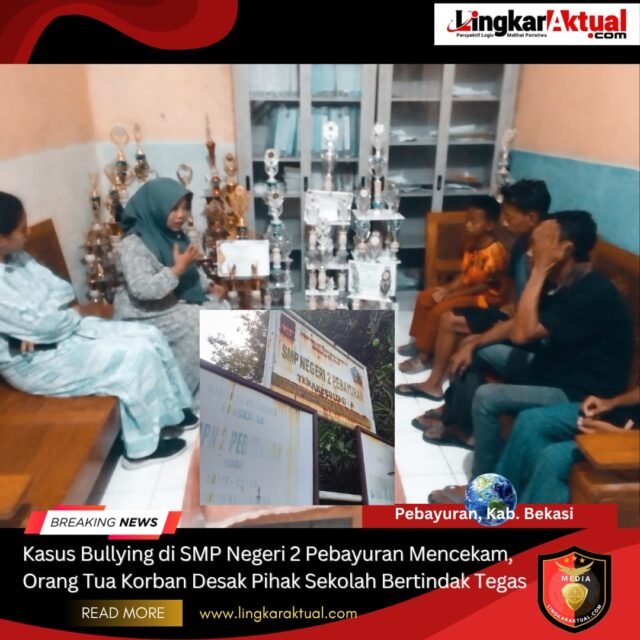 PEBAYURAN, KABUPATEN BEKASI || LINGKARAKTUAL.COM || – Sebuah kasus dugaan bullying yang melibatkan siswa kelas 9 terhadap siswa kelas 7 di SMP negeri 2 Pebayuran telah memicu keprihatinan orang tua dan masyarakat.