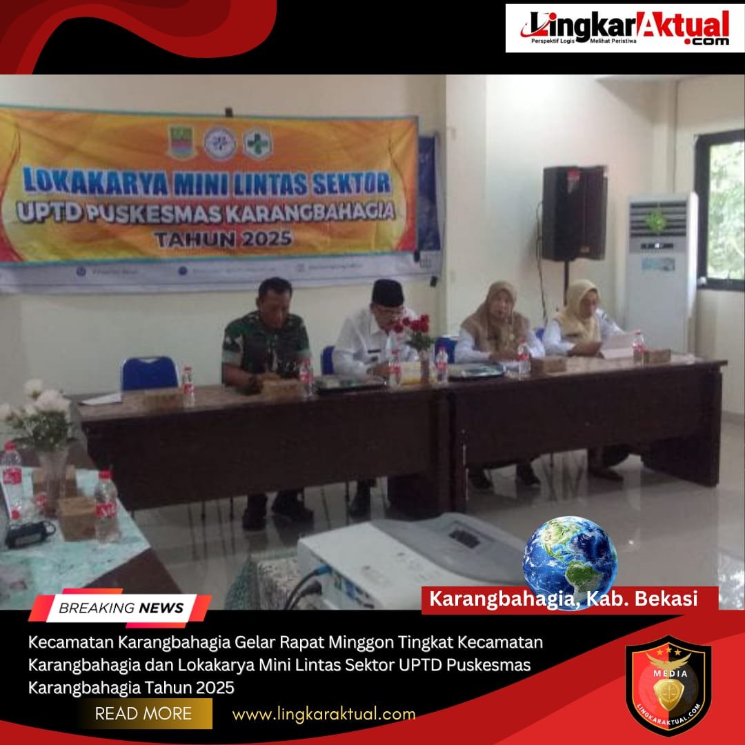KARANGBAHAGIA, KABUPATEN BEKASI || LINGKARAKTUAL.COM || – Kecamatan Karang Bahagia gelar rapat Minggon yang di adakan setiap hari Rabu tahun 2025 dan Lokakarya Mini lintas Sektor UPTD Puskesmas Karang Bahagia yang masing masing yang mewakilkan intansii di wilayah masing masing yang di gelar diruang Aula Kecamatan Karang Bahagia Kabupaten Bekasi Jawa Barat. Rabu 15 Oktober 2025.