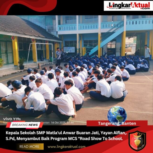 TANGERANG, BANTEN || LINGKARAKTUAL.COM || — Kepala Sekolah SMP Matla’ul Anwar Buaran Jati, Yayan Alfian, S.Pd., menyambut baik dan memberikan apresiasi atas pelaksanaan program “Road Show to School” yang digelar oleh Media Center Sukadiri (MCS) pada Selasa (14/10/2025).