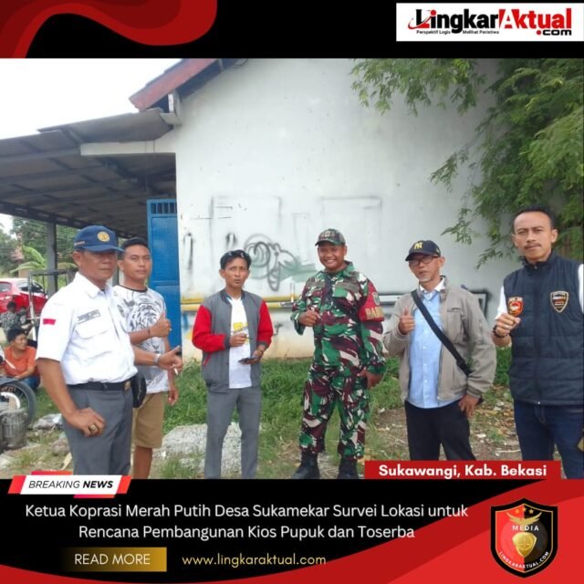 SUKAWANGI, KABUPATEN BEKASI || LINGKARAKTUAL.COM || – Ketua koperasi merah putih desa suka mekar, H Mahmud hasan beserta anggota agus gimen melakukan survey lokasi yang rencana nya akan di bangun kios pupuk dan toserba,di jln raya suka mekar, selasa-30-12-2025