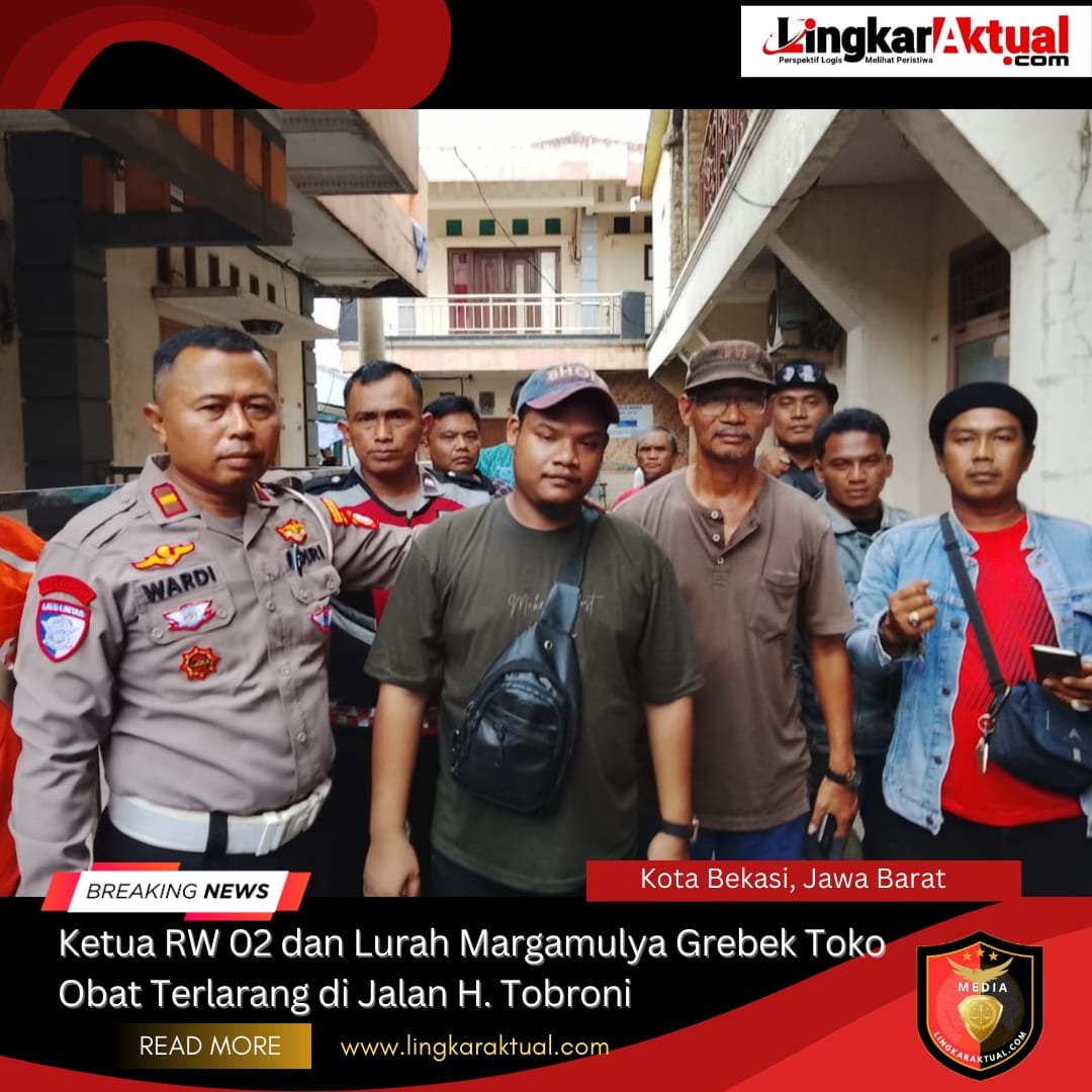 KOTA BEKASI, JAWA BARAT || LINGKARAKTUAL.COM || – Aksi tegas dilakukan Ketua RW 02 beserta warga Kelurahan Marga Mulya, Kecamatan Bekasi Utara dengan menggerebek sebuah toko yang diduga menjual obat-obatan terlarang jenis Tramadol, Sabtu (20/9/2025).